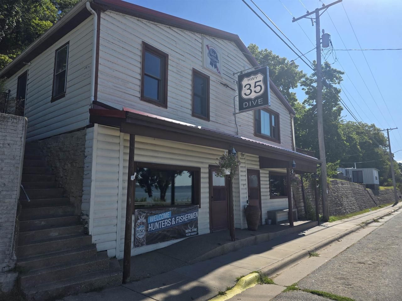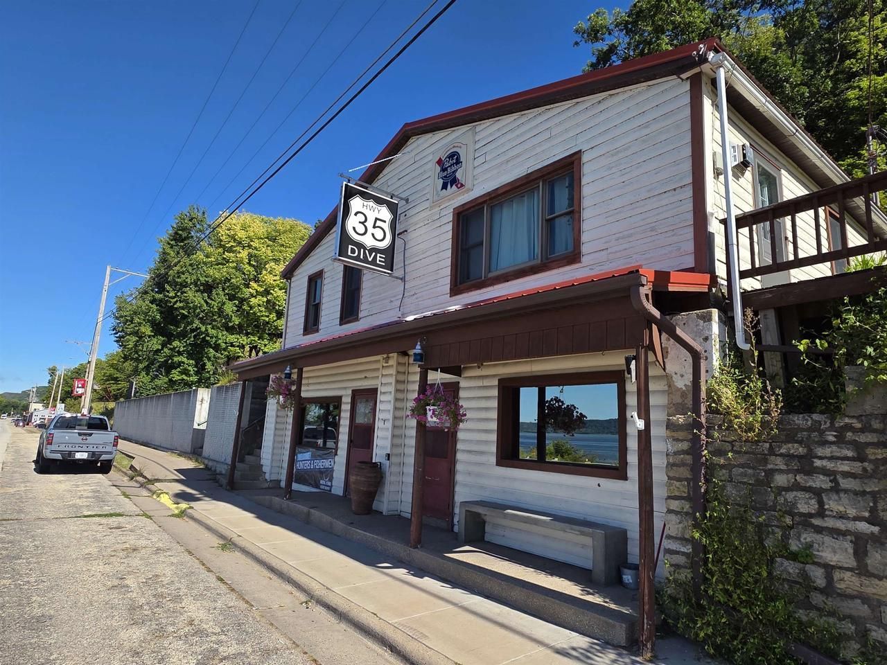 Prime Highway 35 location with a million-dollar view of the Mississippi River and bluffs. Currently operating as a bar with a newly remodeled gaming room and a modern 2-bedroom income-producing apartment above. Great for an owner-operator with multiple potential uses: laundromat, salon/barbershop, wellness center, or additional apartment. Additional lot can be purchased for $10,000 which includes the well which is shared by a neighbor.