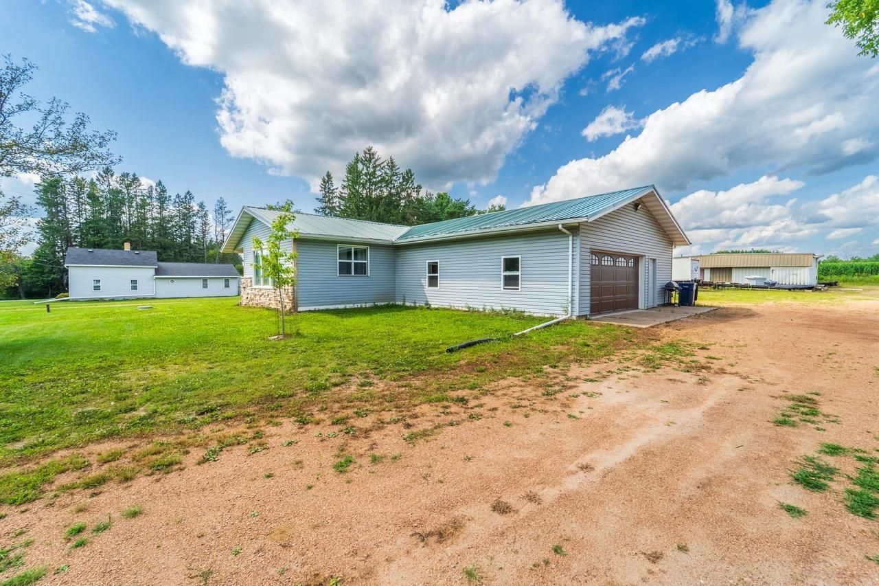 Welcome to this beautifully updated 3 bedroom, 2 bath ranch home in the heart of the Village of Birnamwood! This charming property blends modern updates with warm rustic character, featuring new PEX plumbing, a new water heater, a new metal roof, and some new windows. The attached garage is insulated and has a brand-new garage door for added efficiency and comfort. Step inside to find all-new flooring throughout, including stunning hickory hardwood floors in the living room. The tongue and groove soft maple wall coverings and tamarack ceilings create a cozy, cabin-like atmosphere. The kitchen is a standout with brand-new hickory cabinetry and updated finishes, while both bathrooms have been tastefully modernized as well. A gas fireplace in the living room adds warmth and ambiance, perfect for Wisconsin winters. Half of the home features new siding, offering a fresh appeal and lasting protection.,This property also boasts a high-quality 50x80 commercial-grade shop offering the perfect blend of functionality and efficiency for your business or hobby needs. Featuring a 200-amp breaker panel, the building is fully heated and insulated for year-round use. Inside, you'll find both a full bath and a half bath, a dedicated office space for administrative needs, and a pellet stove for additional cozy heat. The shop also comes equipped with a 9,000-pound 2-post car lift, ideal for automotive work. Whether you're looking to run a business, expand your storage, or set up the ultimate workshop, this property is built to perform. This move-in-ready property is a true blend of craftsmanship and convenience'don't miss your chance to make it yours!