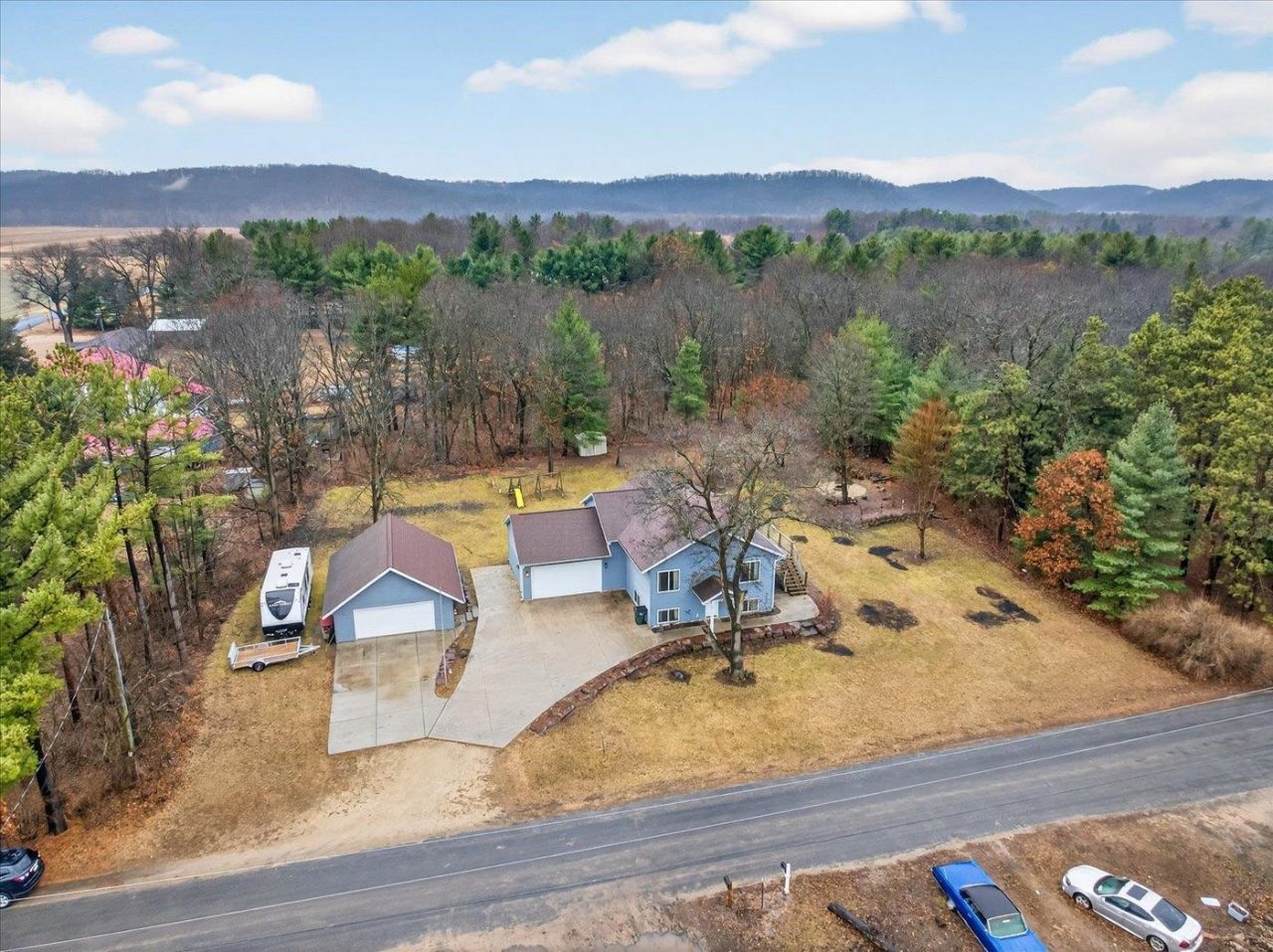 Rustic country charm meets modern comfort on this spacious .75+ acre property. Tucked away on a beautifully sized lot, this inviting home offers a warm, lodge-like feel with rustic maple cabinetry, knotty pine trim and doors, and a mix of brass and nickel-plated fixtures that create a truly unique and welcoming atmosphere. The thoughtfully updated layout now includes an added 4th bedroom, offering extra flexibility for guests, a home office, or growing needs. Step outside to enjoy the expansive yard and deck?perfect for gatherings, play, or simply relaxing in your private outdoor space. In addition to the attached garage, the property features an extra detached garage/shop, ideal for hobbies, storage, or new projects.