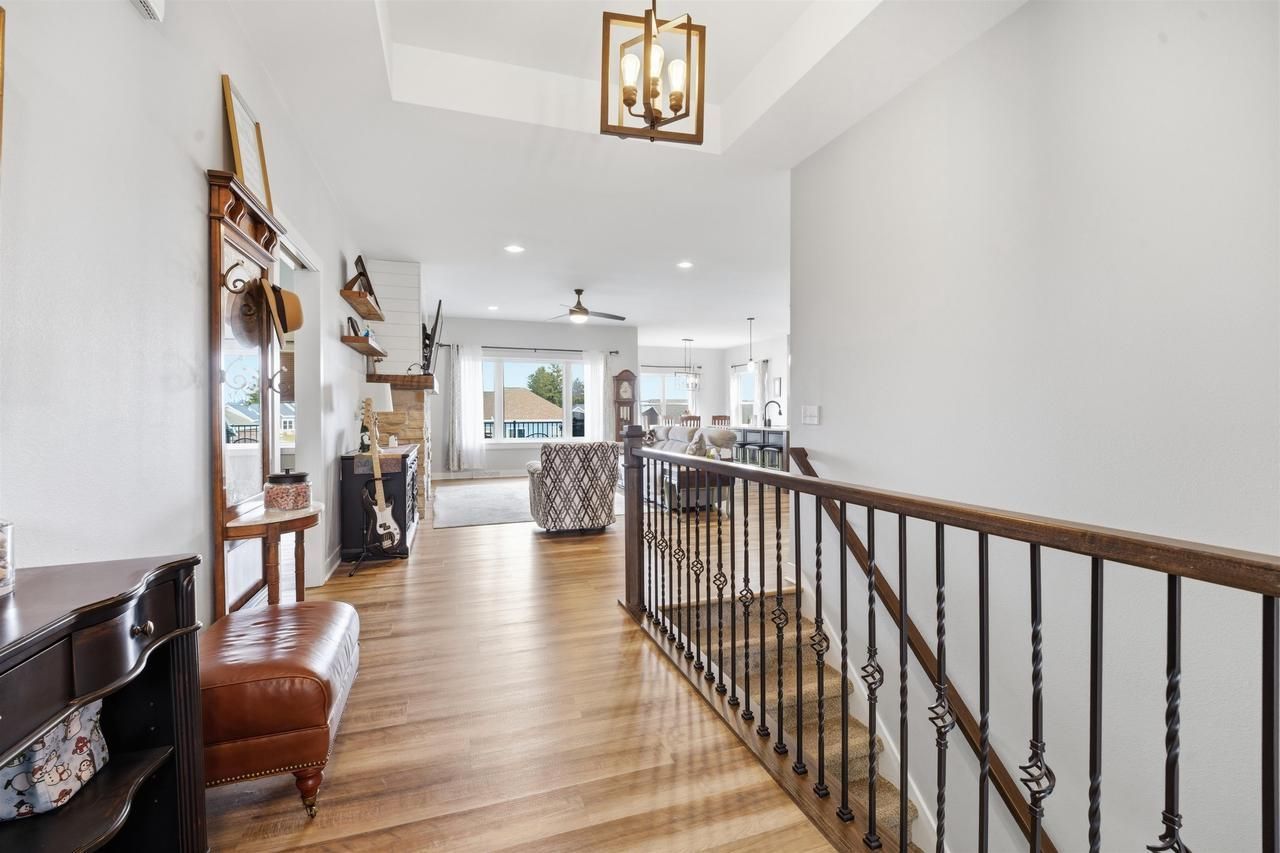 Motivated Sellers! Welcome to this custom-built 3,300 sq ft ranch set on a generous .43-acre lot. Designed with space and function in mind, this home offers a thoughtful split-bedroom layout with 5 bedrooms and 3.5 bathrooms including a convenient shared bath between two main-level rooms. Sunlight pours into the open-concept living area, where the expansive kitchen island anchors the space. Step outside to an elevated deck overlooking the backyard, with a patio below for additional entertaining space. The finished walkout lower level adds even more versatility, featuring two bedrooms, a full bath, and direct access to the yard. A 4-car garage completes the package with ample room for vehicles, storage, hobbies, or a workshop. Buyer to verify all measurements.